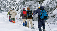 両手にストックを持ち、雪上のトレッキングです。スキーやスノーボードと違い、自分から自発的に体を動かして移動し、周囲の環境を楽しむスポーツです。特別な技術は不要です。